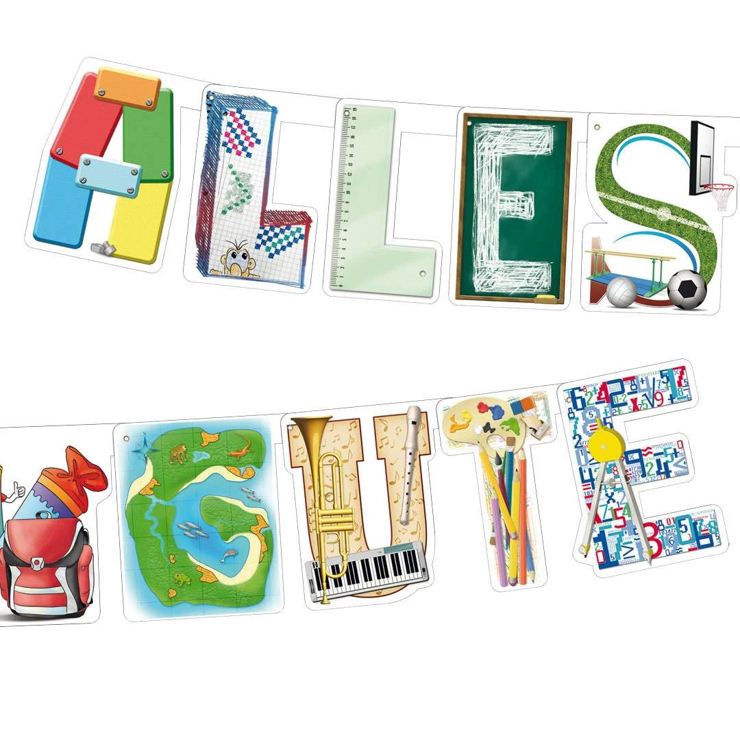 Dekoration zur Einschulungs-Feier Girlande Schulanfang mit Schriftzug “Alles Gute”,