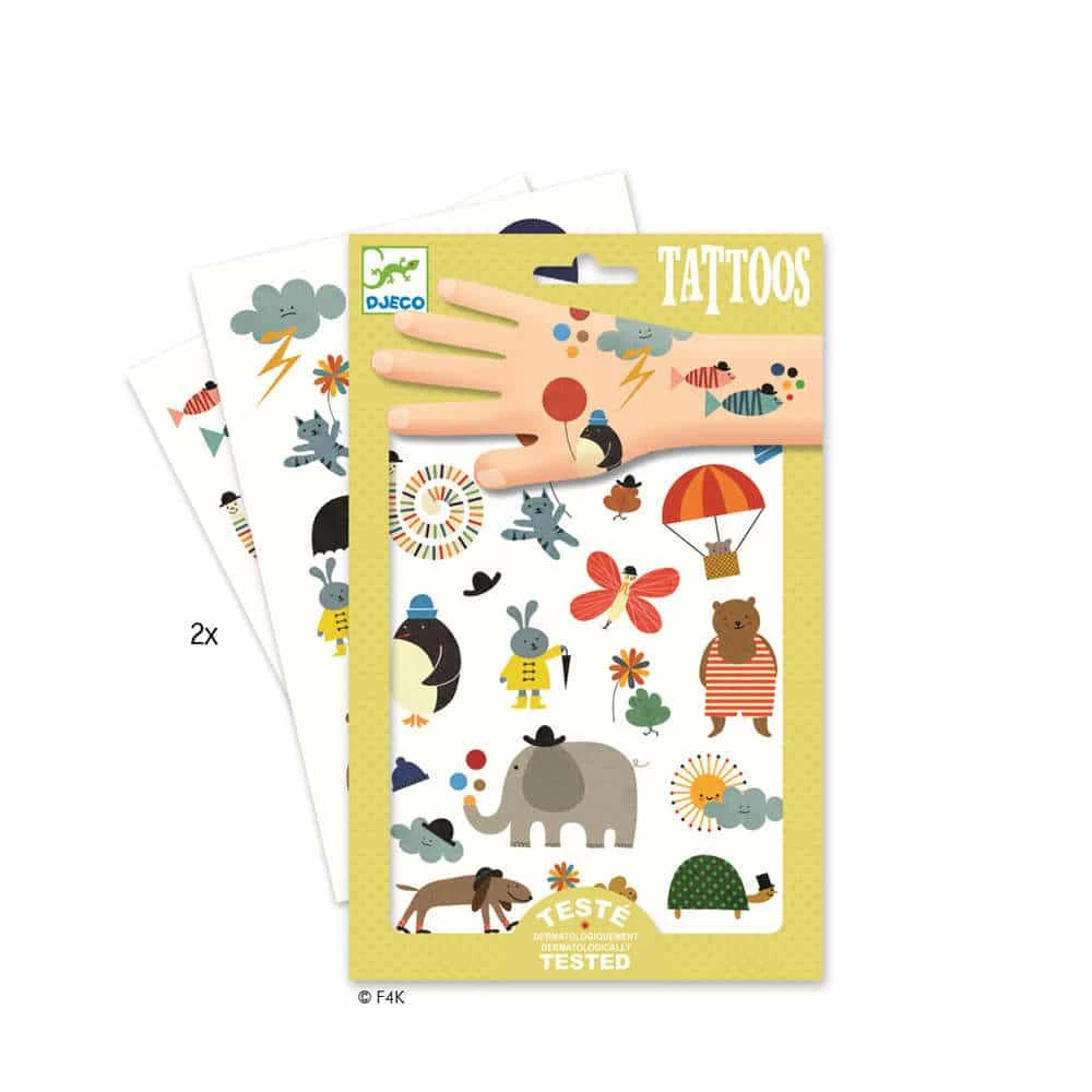 Set mit Kindertattoos mit 2 Blättern mit vielen niedlichen kleinen Dingen für Kinder,