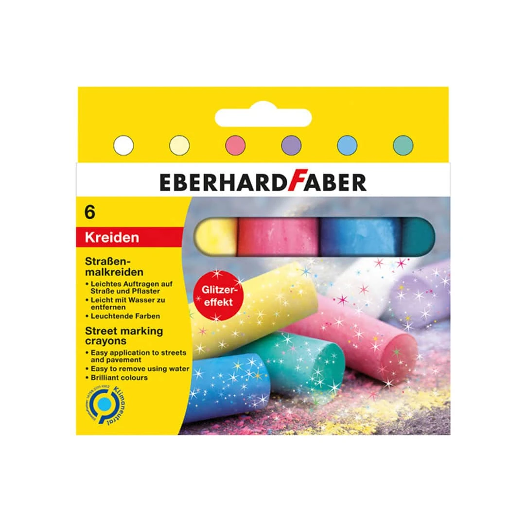 6 Strassenkreiden in leuchtenden Farben mit Glitzereffekt, leicht auf Straße und Pflaster auftragbar und mit Wasser abwaschbar,