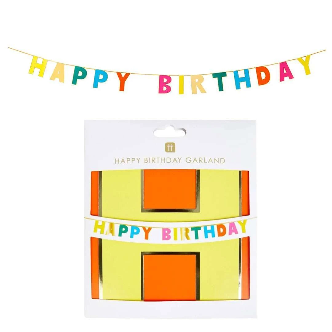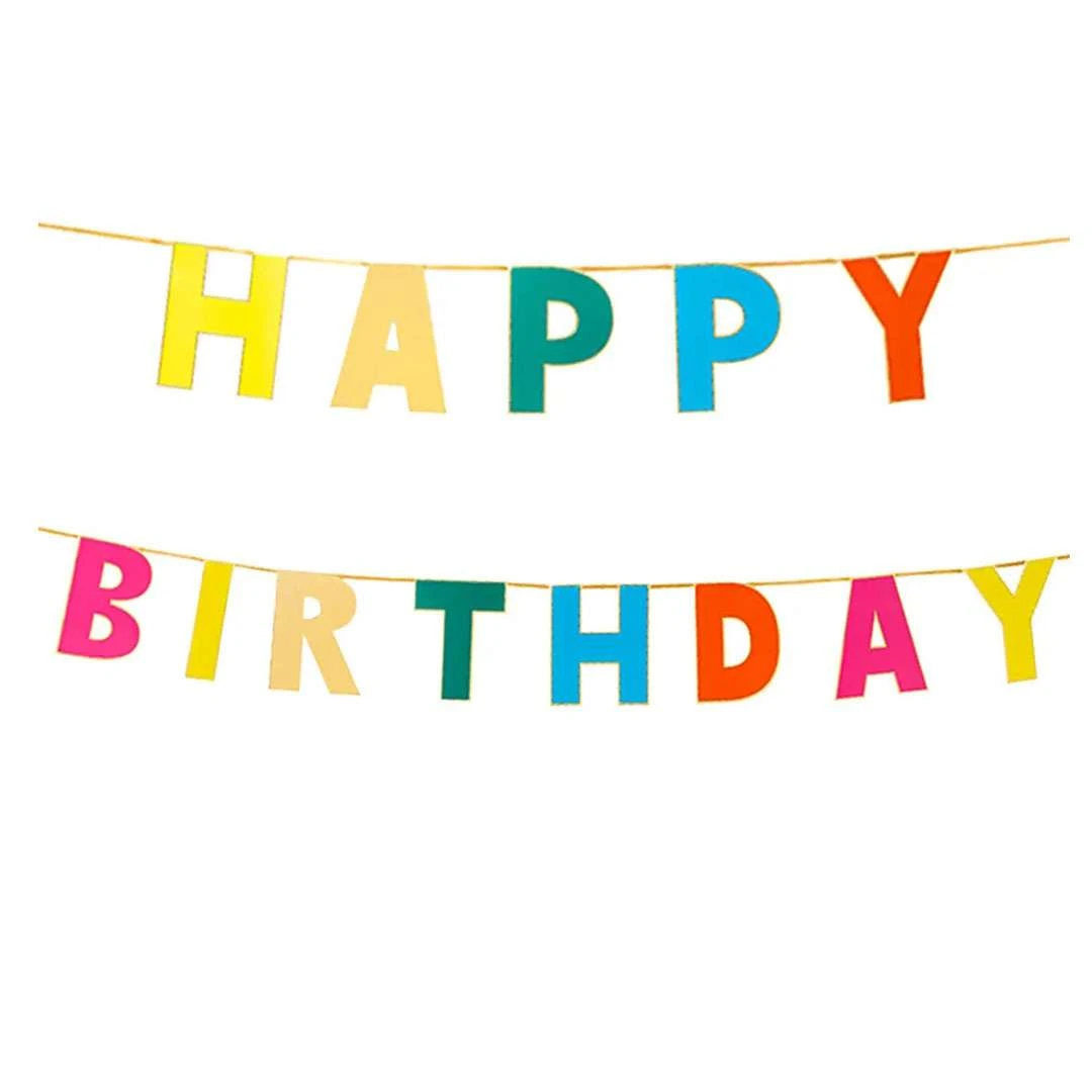 Party-Girlande mit Goldprägung und großen, bunten Buchstaben, zum Geburtstag,