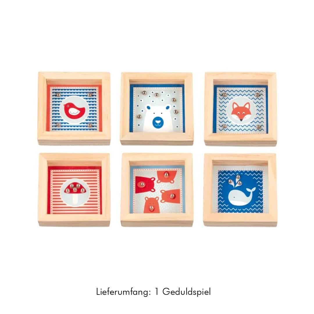 Hinweis: Die Geduldspiele sind in 6 Varianten erhältlich. Geliefert wird nach Verfügbarkeit. Eine Vorauswahl ist leider nicht möglich. Sie können uns aber im Bestellprozess unter “Bemerkungen” Ihren Variantenwunsch mitteilen, wir bemühen uns um Erfüllung Ihrer Wünsche. Ein Rechtsanspruch besteht jedoch nicht.