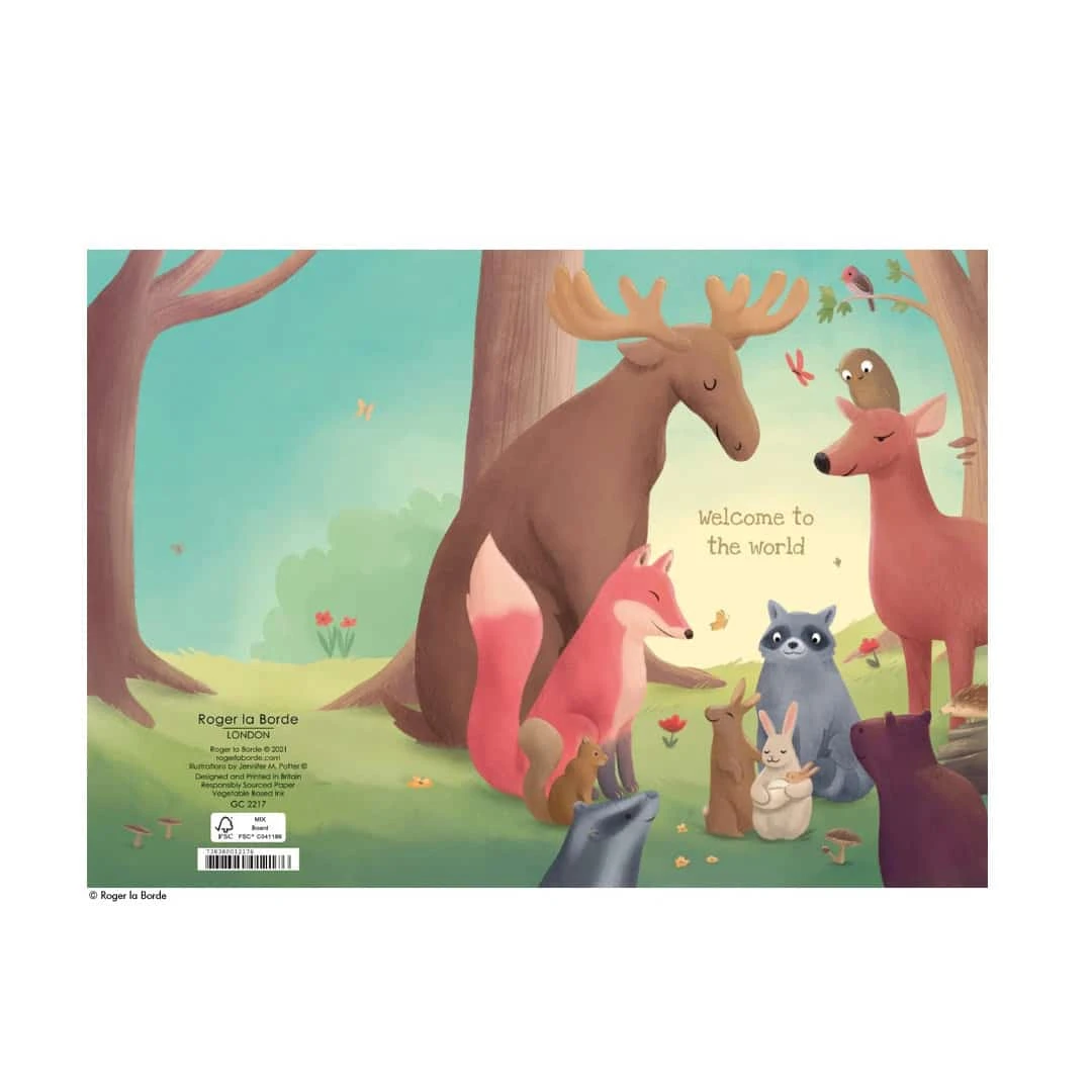 Glückwunschkarte zur Geburt Tiere im Wald “Welcome to The World”
