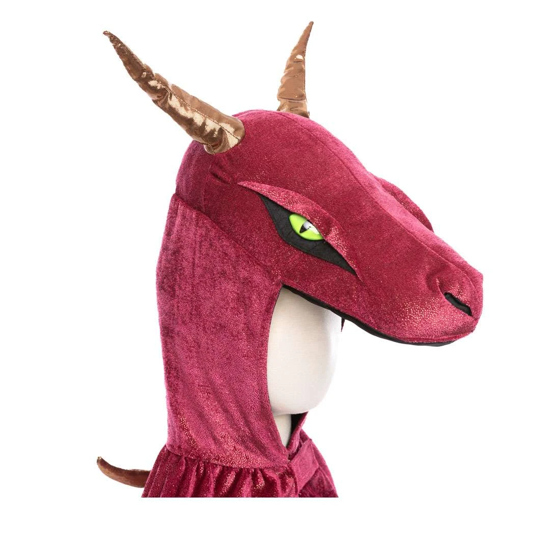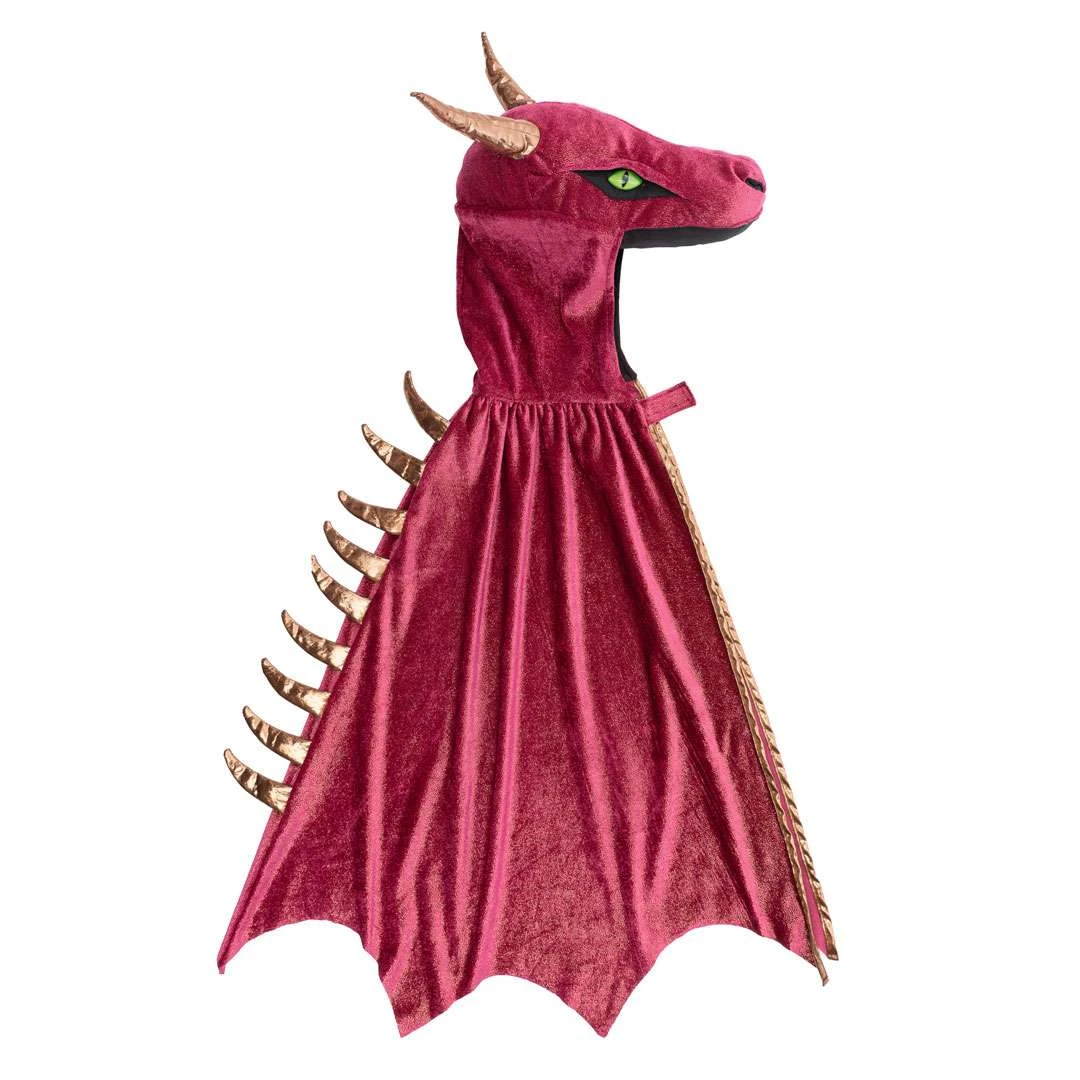 Mit diesem hochwertigen Drachen-Cape wird man zum gefährlichen gold-orangefarbenen Sternennachtsdrachen! Der Umhang besteht aus hochwertigen texturierten und glänzenden Velours und hat eine feste Kapuze gefüllt mit Polyurethanschaum, die einen Drachenkopf darstellt. Die Augen sind aus Glas gefertigt und sehr realistisch, um nicht zu sagen: täuschend echt. Der Drachenschwanz hat golden glimmernde Schuppen und die Hörner sowie der Saum des Umhangs schimmern ebenfalls in Gold.