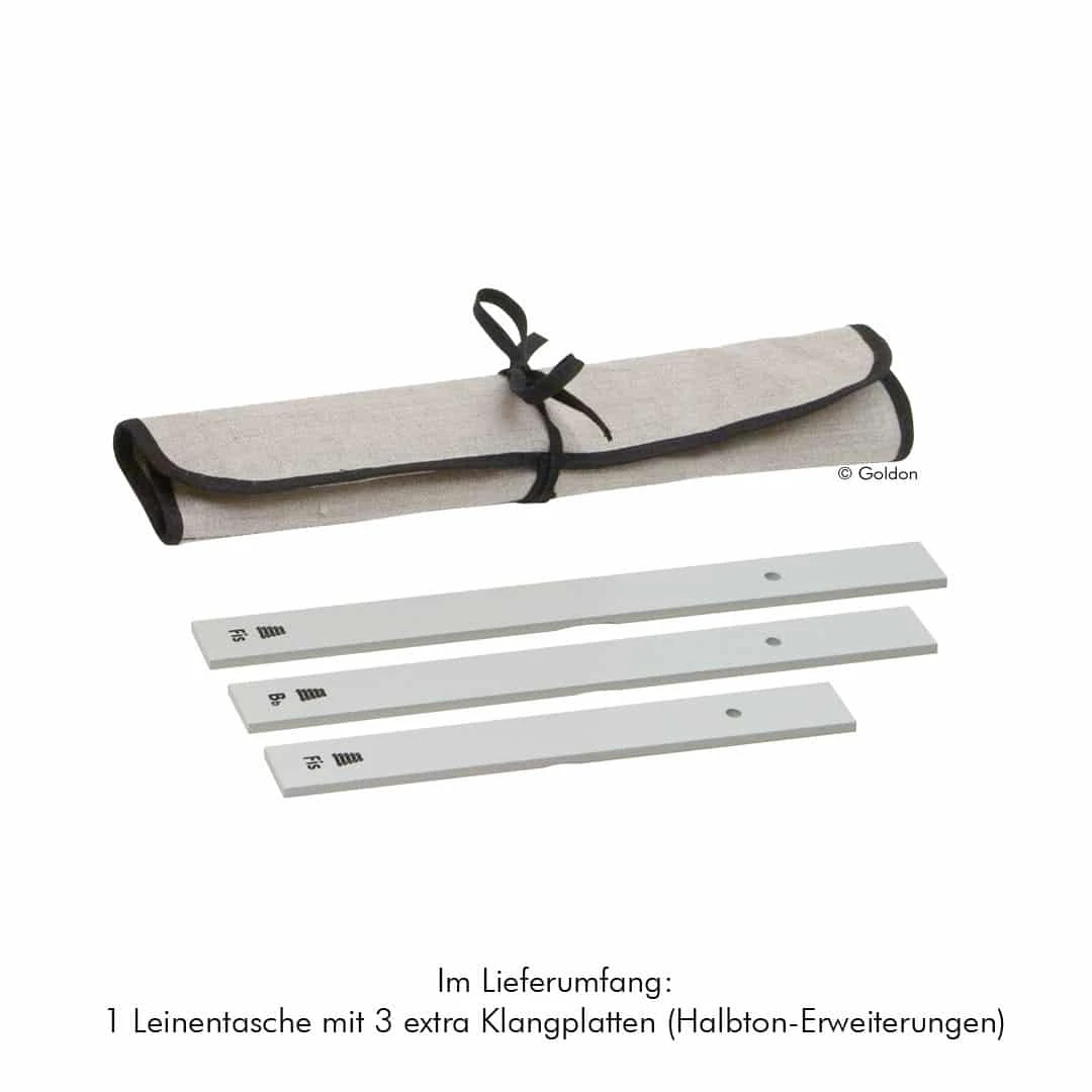 Stabspiel Sopran-Metallophon mit 16 Tönen (Klangplatten aus Aluminium) und großem Resonanzkörper. Inkl. 2 Filzschlägel und einer Leinentasche für die Halbtöne.