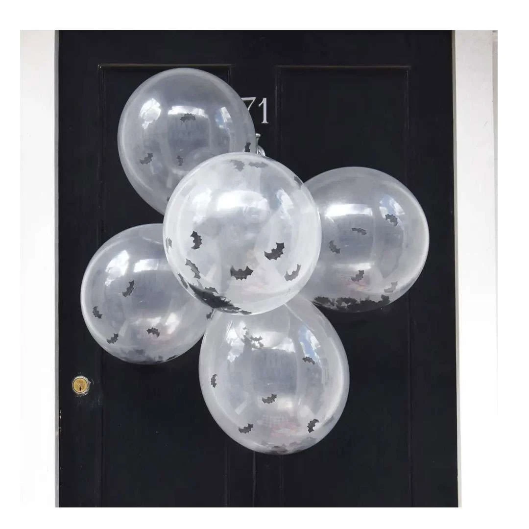 5 mit Fledermaus-Konfetti gefüllte Halloween-Luftballons und eine Papierschnur zum Aufhängen,