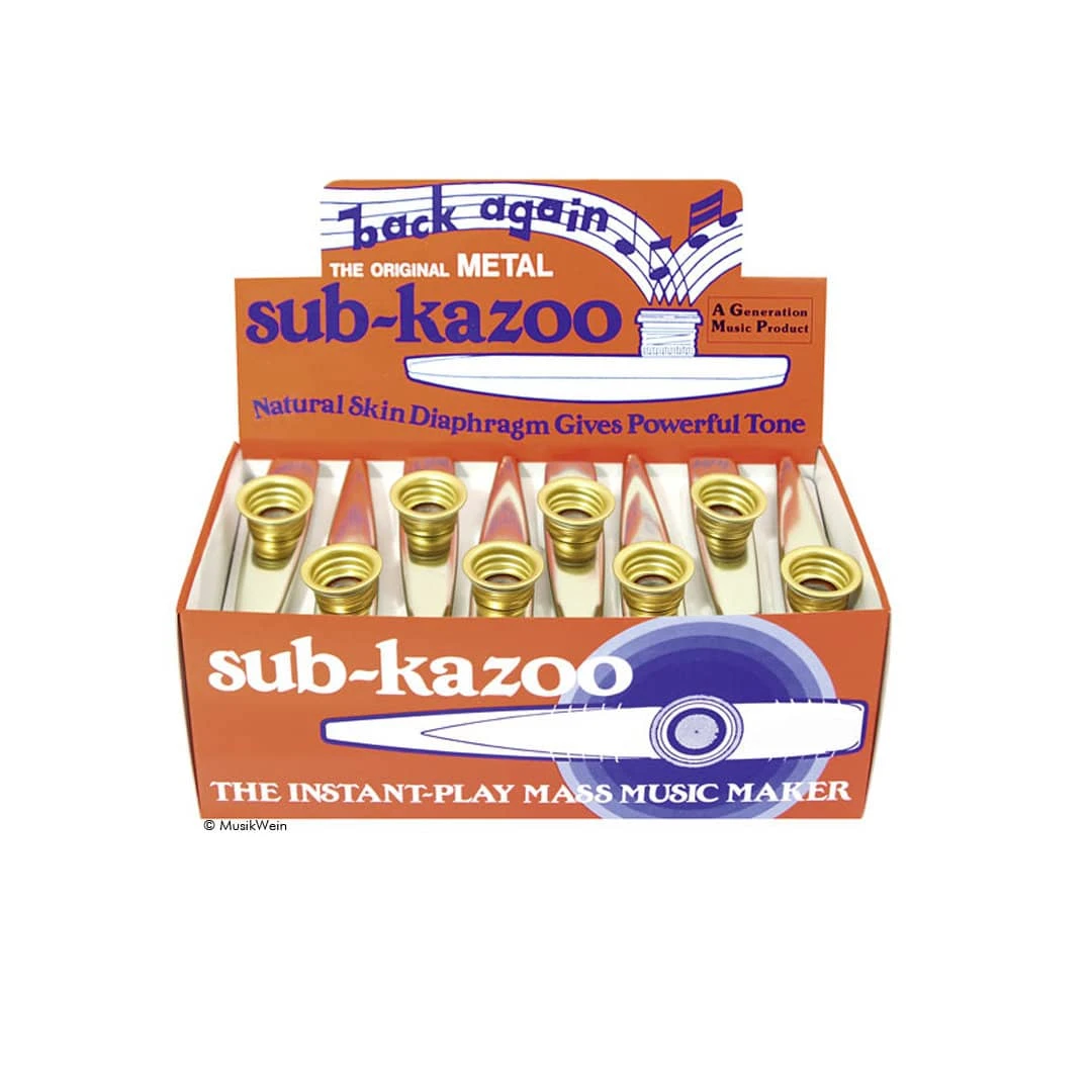 Ein Kazoo ist eine kleine Tröte mit einer Membran. Sie funktioniert ähnlich wie das Kammblasen: Der Ton wird erzeugt, indem man hineinsingt.