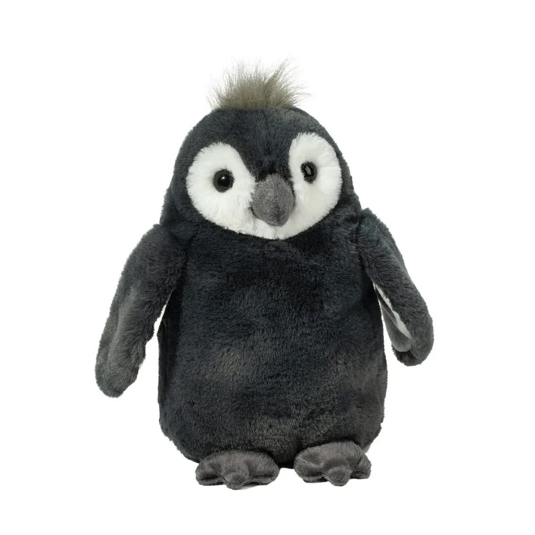 Drolliges Kuscheltier Pinguin, superweiches Stofftier mit Glasaugen und lustigem Haarbüschel auf dem Kopf,