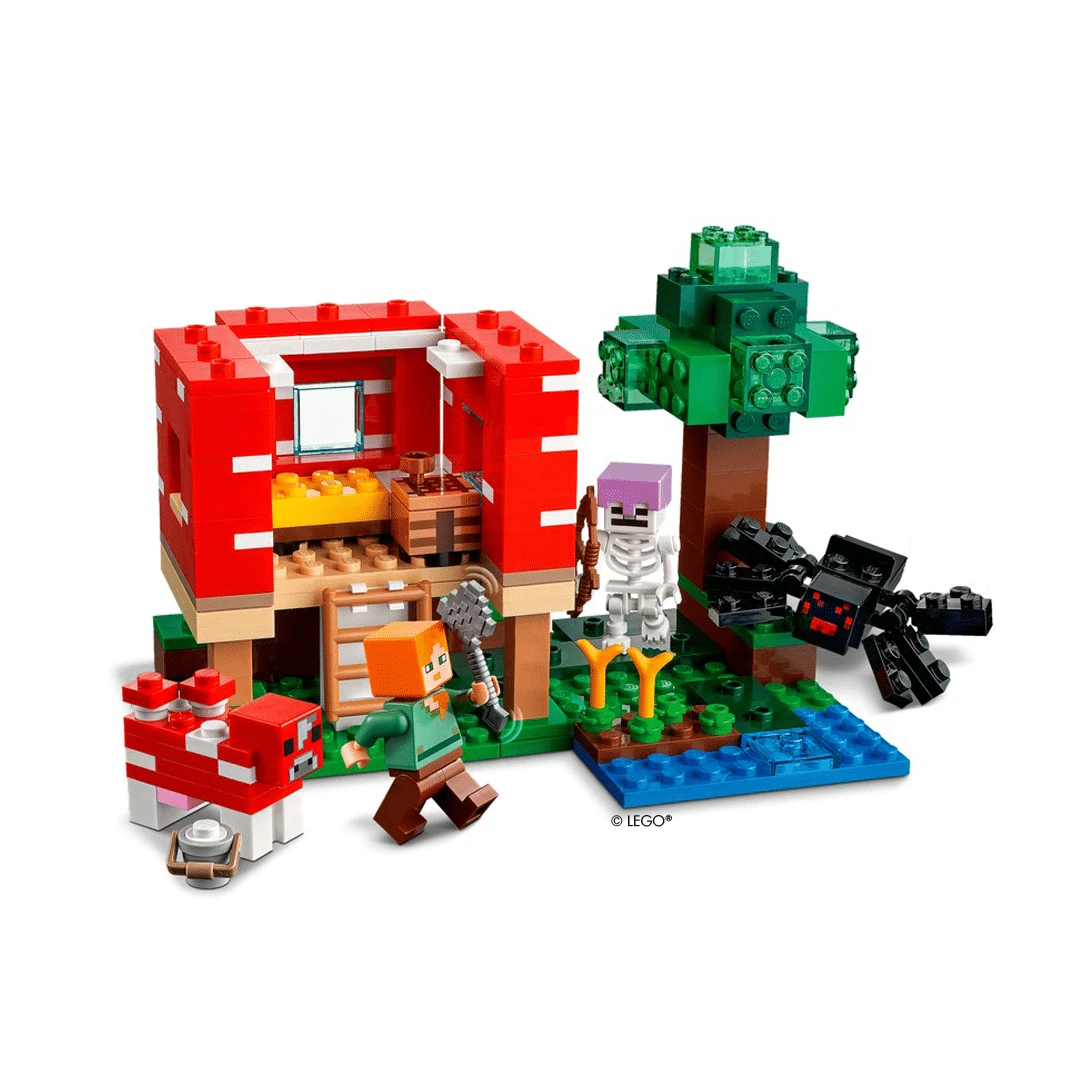 Dieses kreative Bauset aus der LEGO® Minecraft™ Welt enthält Figuren aus dem Minecraft™ Online-Spiel und der Minecraft™ Bauwelt. Es kann ein Haus gebaut und bespielt werden, das aussieht wie ein Pilz, und auch beliebig umgebaut werden. Im Set enthalten sind eine Fülle authentischer Details aus der Minecraft-Welt. Das Set enthält außerdem legendäre Minecraft® Charaktere: Alex, eine Pilzkuh und einen Spinnenreiter. Das Dach und die Wände des Hauses lassen sich abnehmen, so kommt man an die Einrichtung heran. Draußen kann man eine Pilzkuh melken und den Spinnenreiter verscheuchen.