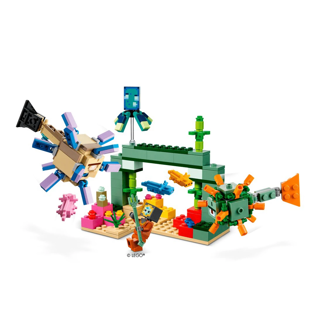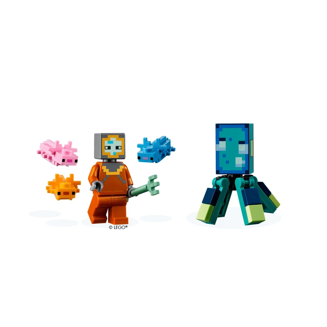 Dieses kreative Bauset aus der LEGO® Minecraft™ Welt enthält Figuren aus dem Minecraft™ Online-Spiel und der Minecraft™ Bauwelt. Es kann ein Ozeanmonument im farbenfrohen Korallenriff gebaut werden. In diesem ist ein Schatz versteckt. Zusätzlich lauern dort aber auch 2 legendäre Minecraft Kreaturen: Ein Wächter und ein Großer Wächter, gegen die man sich durchsetzen muss. Wer die Mission weiterführen möchte, benötigt zunächst deren Dreizack und die Hilfe der 3 Axolotls. Zusätzliche Gefahr droht, wenn der Große Wächter seinen Schwanz schnalzen lässt, um eine Laserrakete abzufeuern. Neben dem Korallenriff und dem Monument beinhaltet das Set auch die folgenden Minecraft® Charaktere: einen Taucher, einen Leuchttintenfisch, einen Wächter, einen Großen Wächter und 3 Axolotls.
