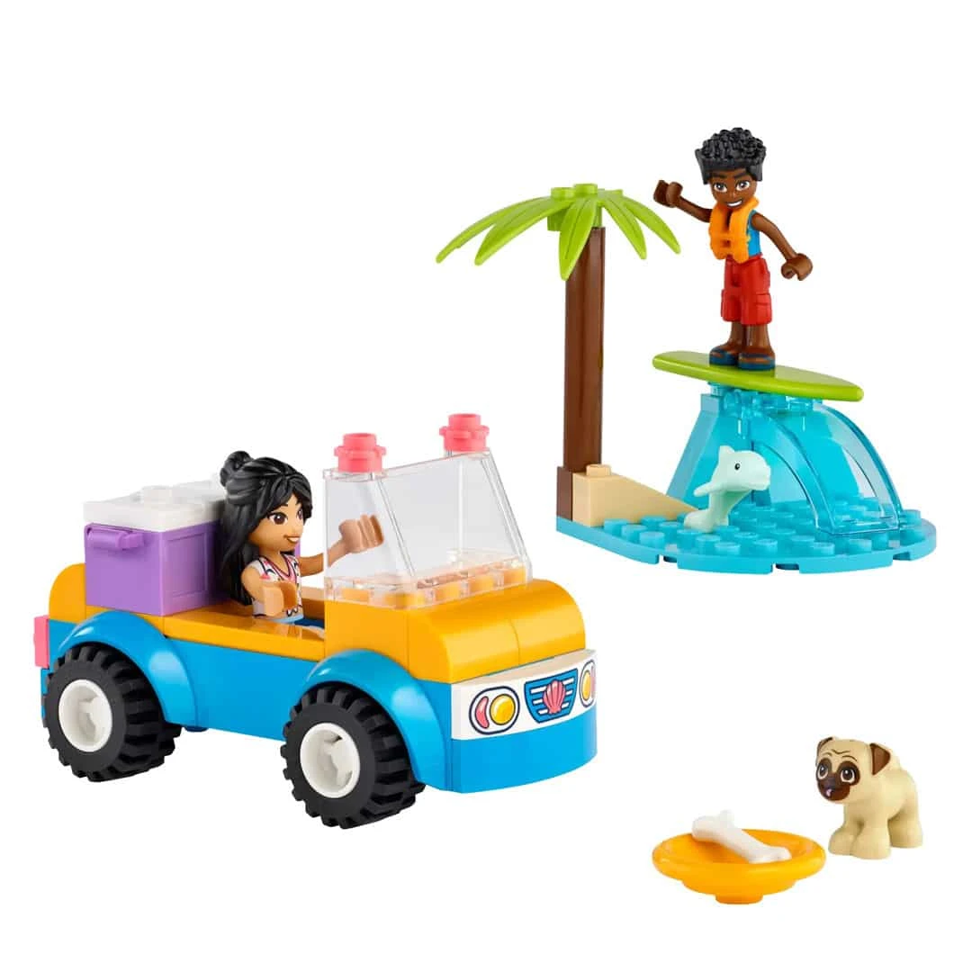 Bauset für Kinder LEGO Friends Strandbuggy-Spaß mit Fahrzeug, 2 Spielfiguren, einer Hunde- und einer Delfinfigur sowie Zubehör.