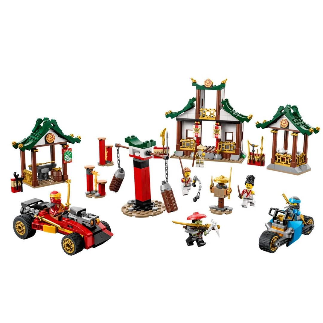 Mit dem Bauset kann man insgesamt 3 Gebäude bauen sowie einen Hindernisparcours mit Trainingsstationen für die Kämpfer. Natürlich darf die Ninja-Ausrüstung nicht fehlen sowie ein Ninja-Auto und ein Ninja-Motorrad!