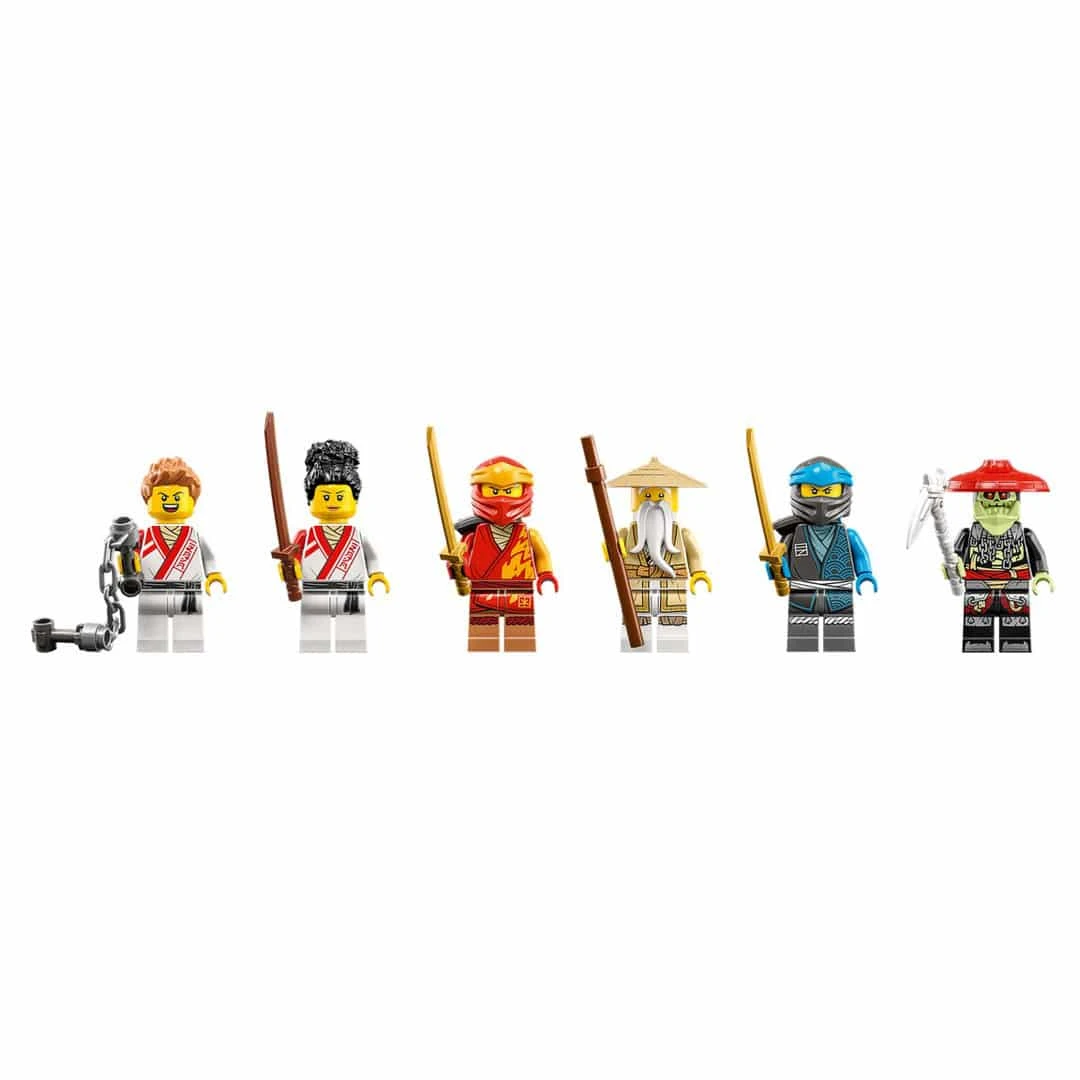 Enthalten im Set sind außerdem 6 voll ausgerüstete Minifiguren: Nya, Kai, Meister Wu, ein Ninja-Schüler und eine Ninja-Schülerin sowie der Skelett-Jäger.