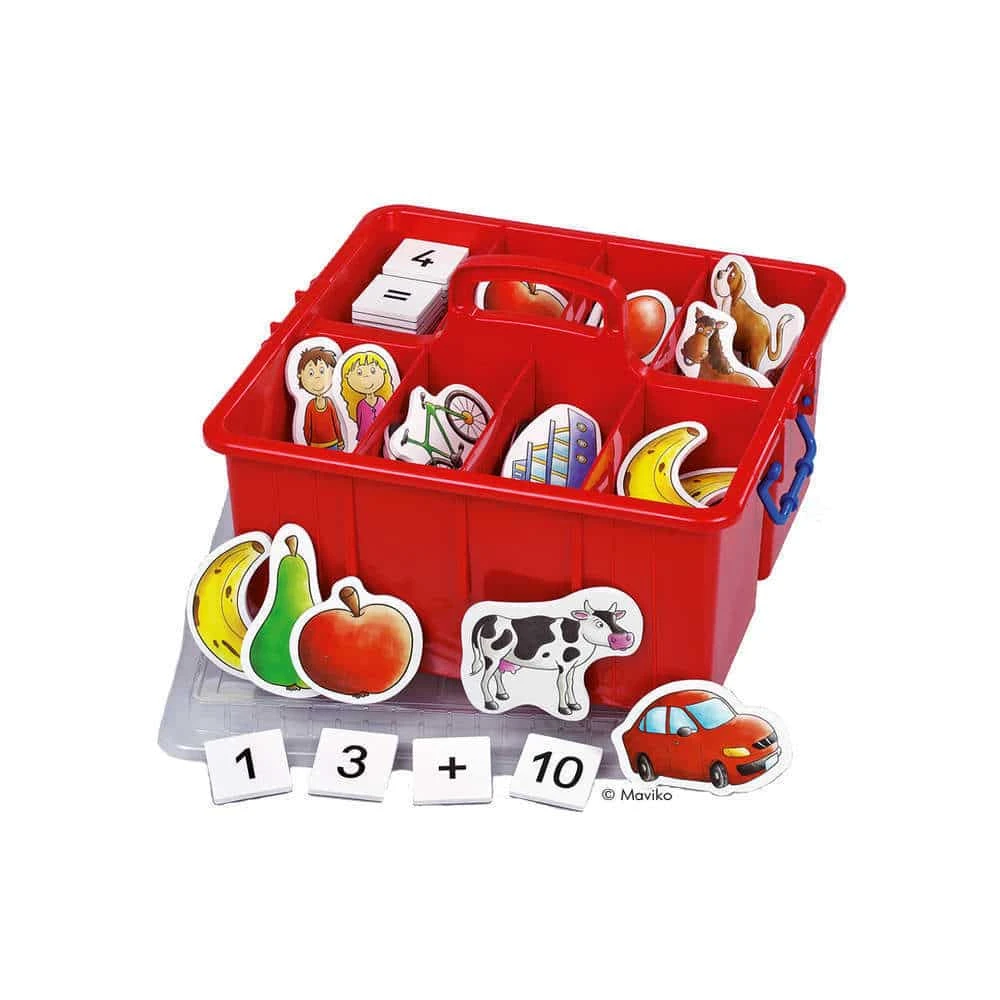 Kunststoff-Box mit 196 magnetischen Teilen zum Ersten Rechnen mit Bildern,