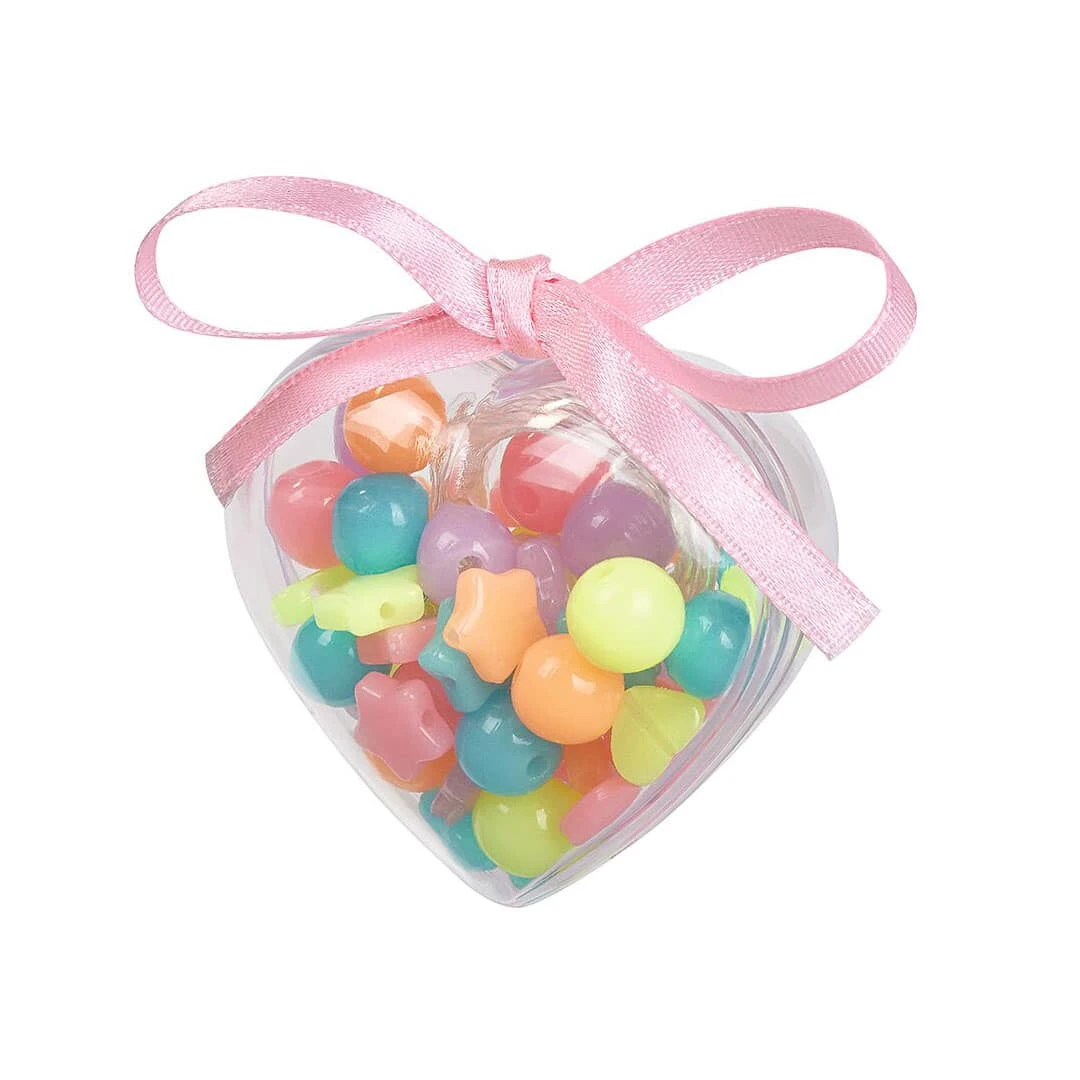 Fädelperlen oder Bastel-Perlen für Kinder, in vielen Farben und Formen, die im Dunkeln leuchten können, in einer herzförmigen Dose,