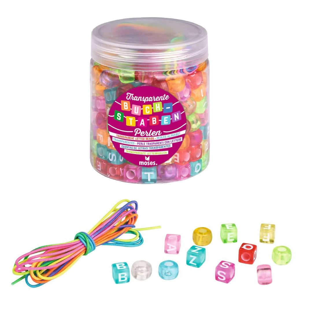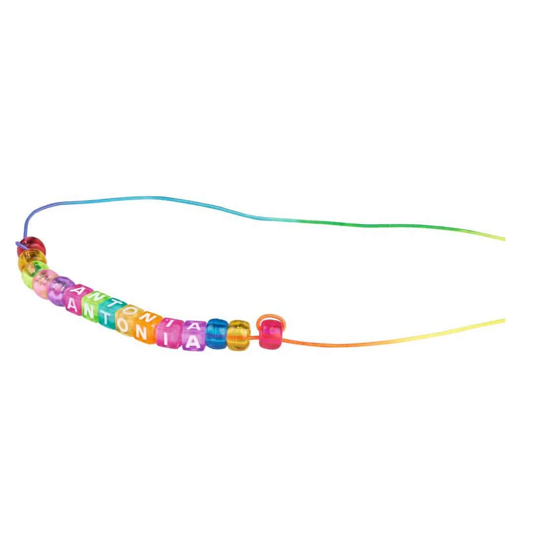 Das Set enthält 200 bunte, transparente Buchstabenperlen sowie ein elastisches Regenbogenband zum Auffädeln, zum Basteln und Gestalten von Armbänder und Ketten und vieles mehr, zum Beispiel für Freundschaftsarmbänder oder für Namensketten.