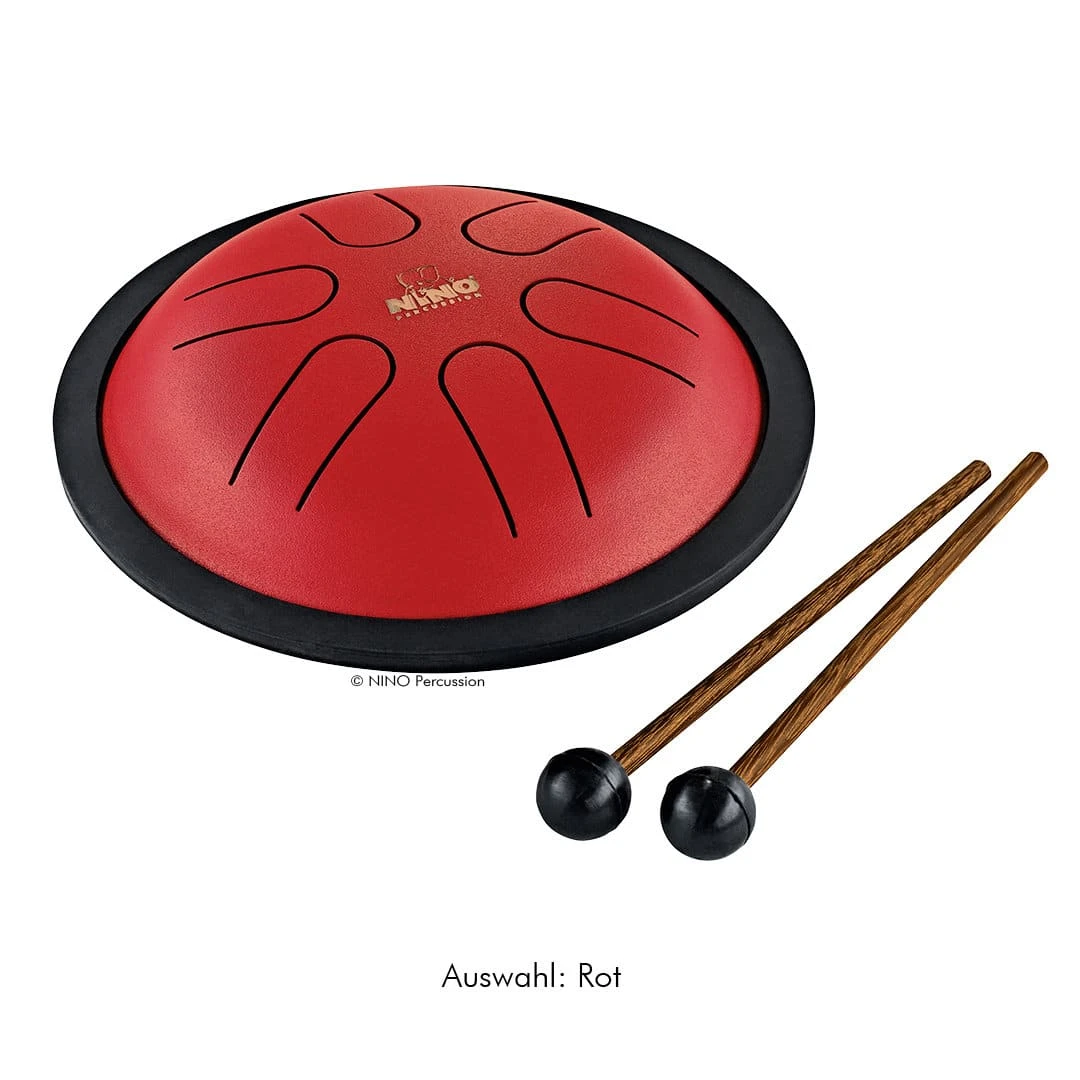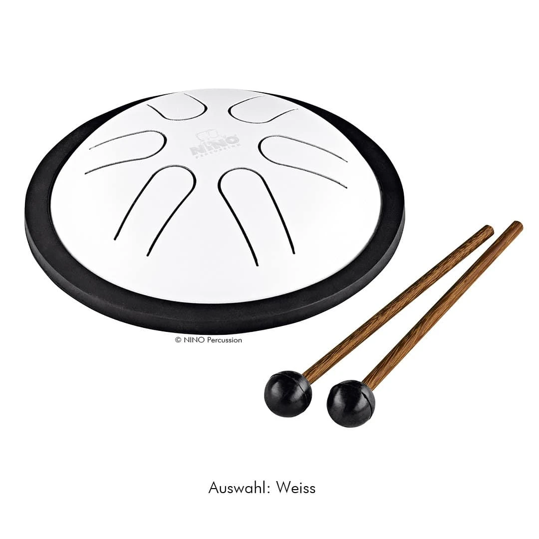 Mini Steeldrum in Rot oder Weiß, C-pentatonisch gestimmt, inklusive 2 Gummikopf-Schlägeln.