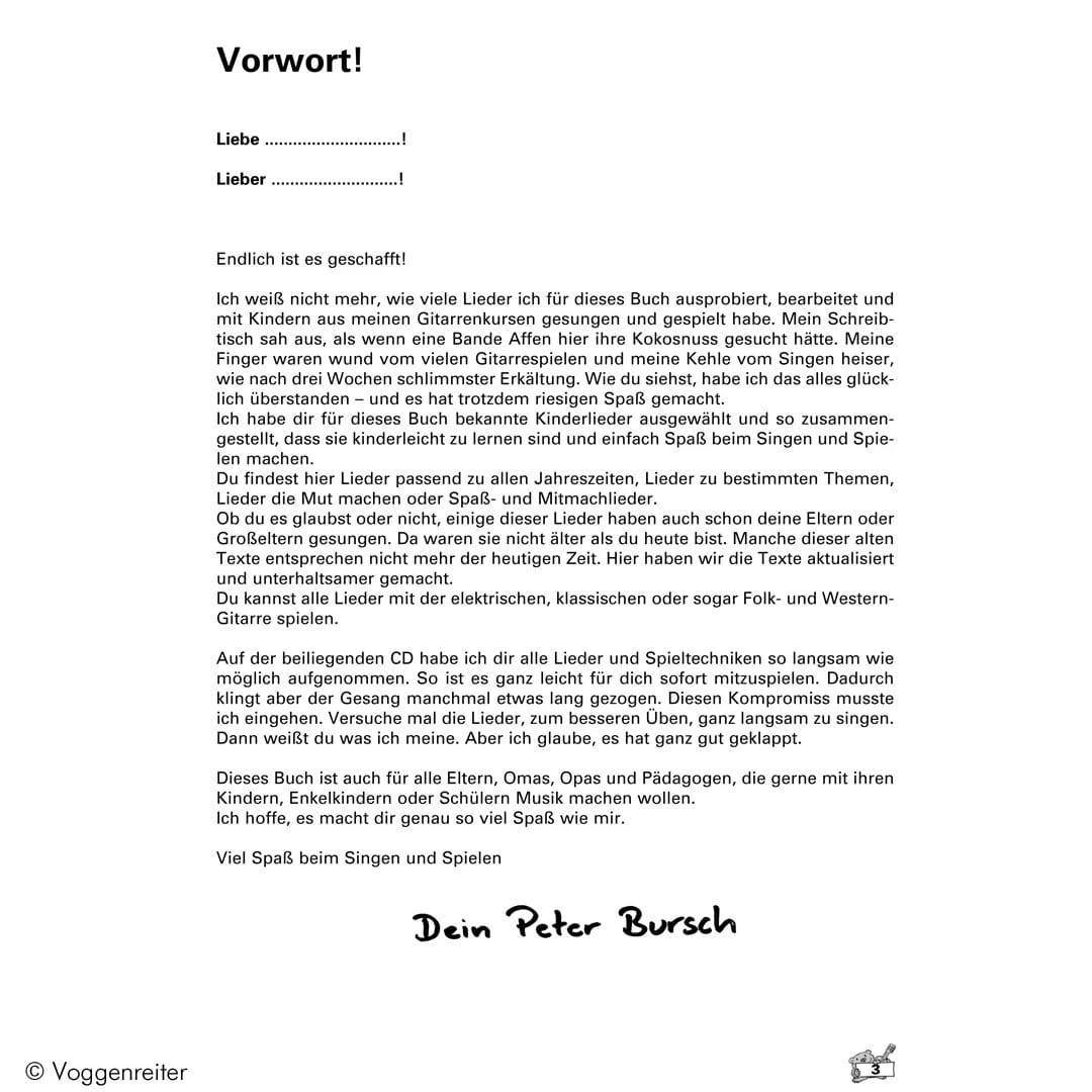 Der “Gitarrenlehrer der Nation”, Peter Bursch, bekannt geworden durch seine Klassiker der Gitarrenliteratur für Anfänger, erklärt dabei zu jedem Lied leicht für Kinder verständlich die notwendigen Spieltechniken für GItarre.
