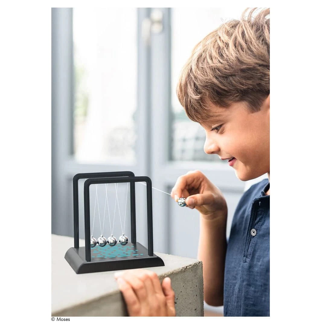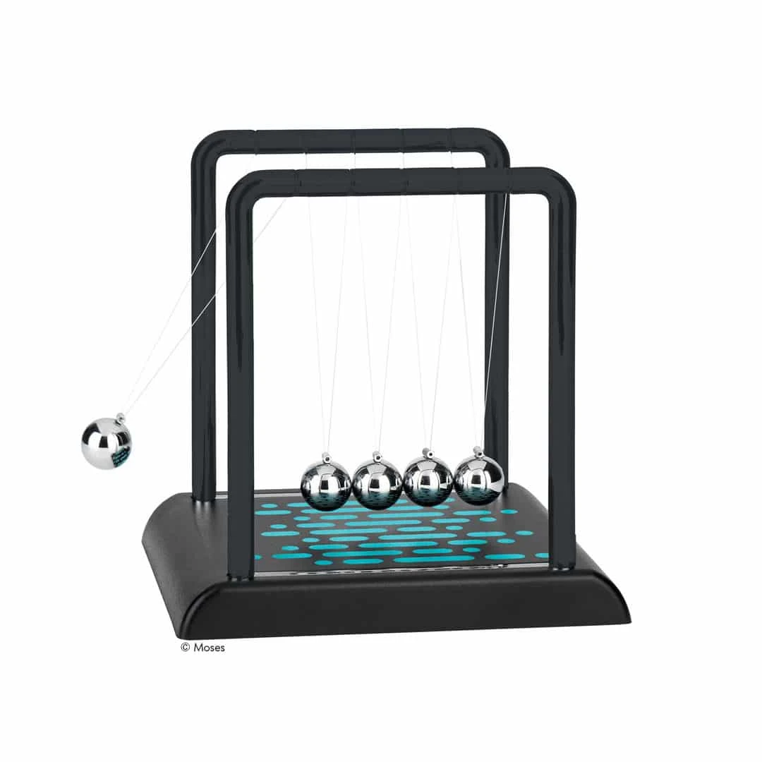 Ein faszinierendes Phänomen ist beim Kugelpendel zu erleben: mit leisem Klick-Klack schwingen die Metallkugeln hin und her und wollen einfach nicht aufhören zu pendeln. Welche geheimnisvolle Kraft steckt wohl dahinter? Interessante Informationen zum wissenschaftlichen Phänomen “Impulserhaltungssatz” im Inneren der Verpackung geben darüber Auskunft. Außerdem ist das Kugelpendel ein echter Hingucker auf jedem Schreibtisch. Nicht nur Kinder wollen sofort das Pendel ausprobieren….