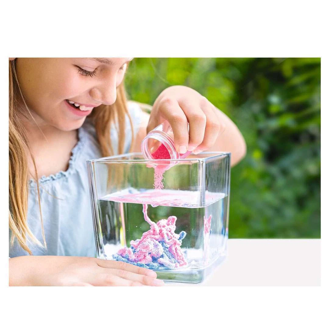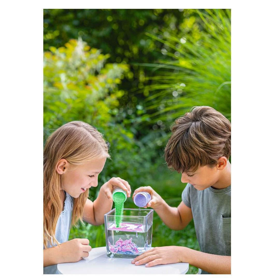 Der “magische” Space Sand kreiert skurrile Formen unter Wasser und ist aber, wenn man ihn aus dem Wasser herausgeholt, sofort vollkommen trocken. Warum das so ist, wird im Inneren der Verpackung erklärt. So lernst du spielerisch und mit viel Spaß, was es mit dem wissenschaftlichen Phänomen “hydrophober Sand” auf sich hat!