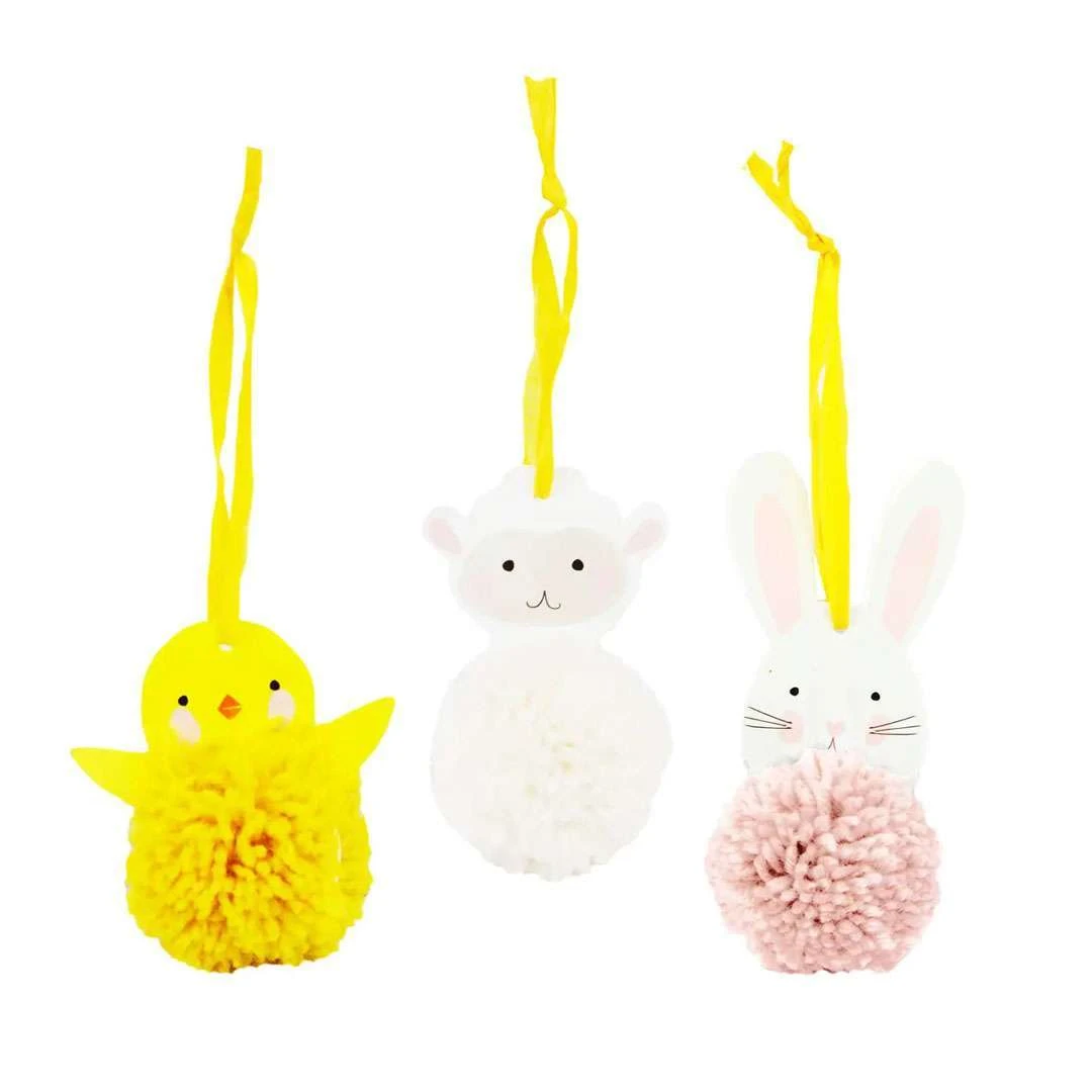 6 Pom-Pom-Osterdekorationen zum Selbermachen, für Kinder zur Herstellung schöner Osterdekorationen,