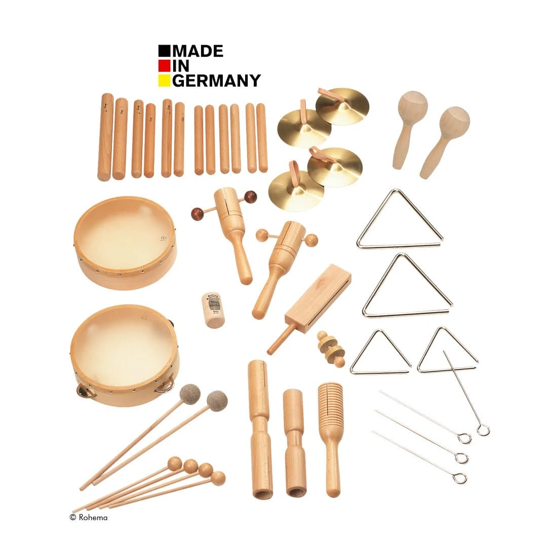 Dieses Rhythmus-Set besteht aus 24 ausgewählten Percussion-Instrumenten und eignet sich zum Musik machen mit Kindern in Gruppen, z.B. in Kitas und Schulen. Die hochwertigen Rhythmus-Instrumente halten Belastungen stand und bieten unterschiedliche Klangfarben. Die Auswahl der Musikinstrumente umfasst die gängigen Instrumente der musikalischen Früherziehung und bieten eine gute Grundlage für das rhythmische Musizieren.