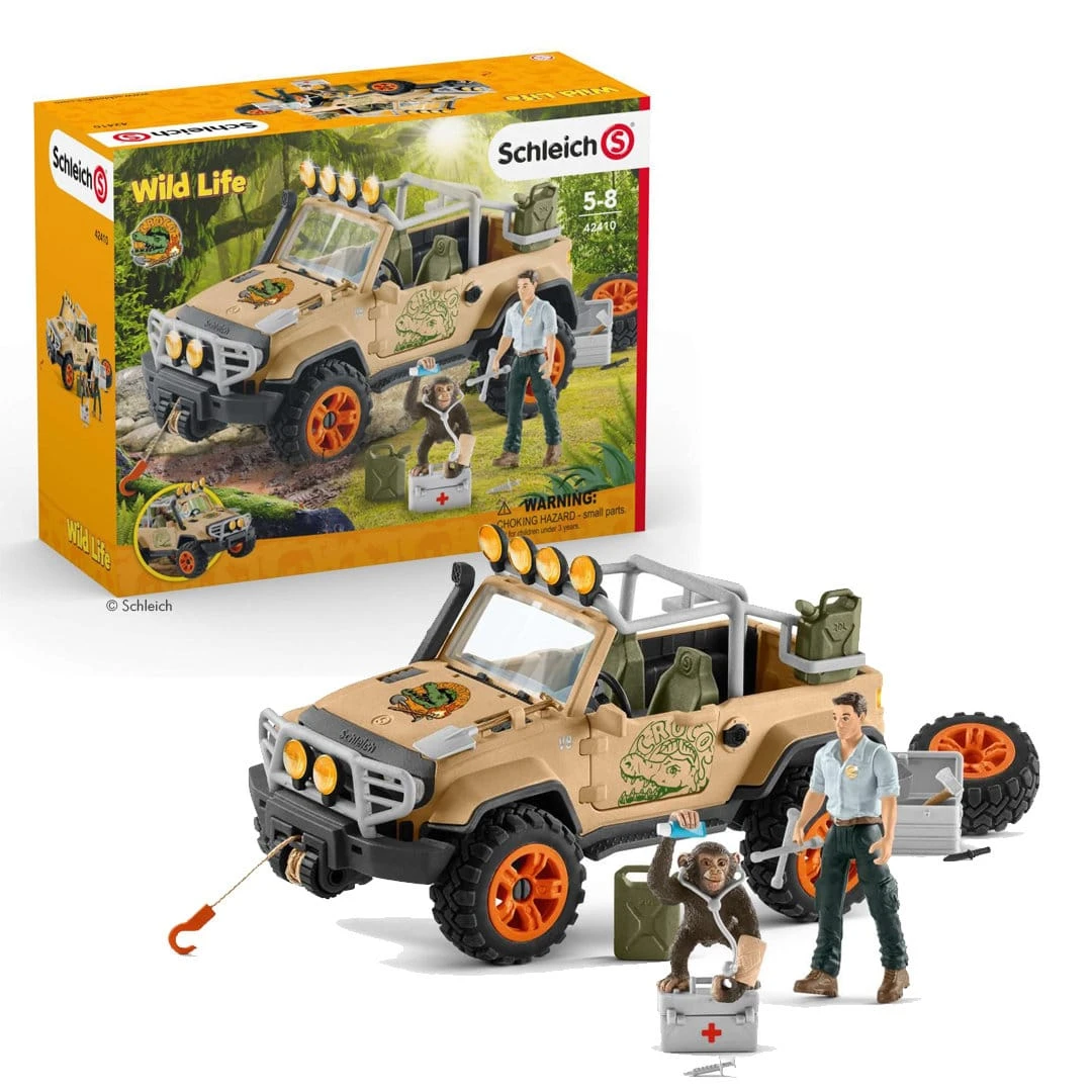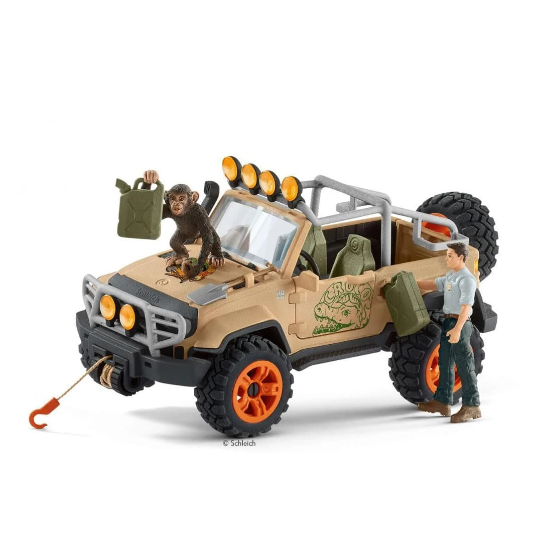 Geländewagen mit Seilwinde, Ranger-Figur, Affe und Zubehör, aus der Wild Life-Serie,