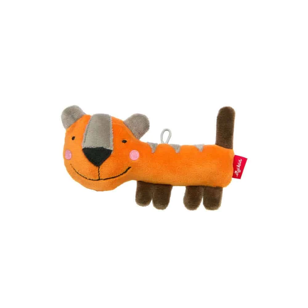 Greifling mit Quietscher Rassel Tiger orange,