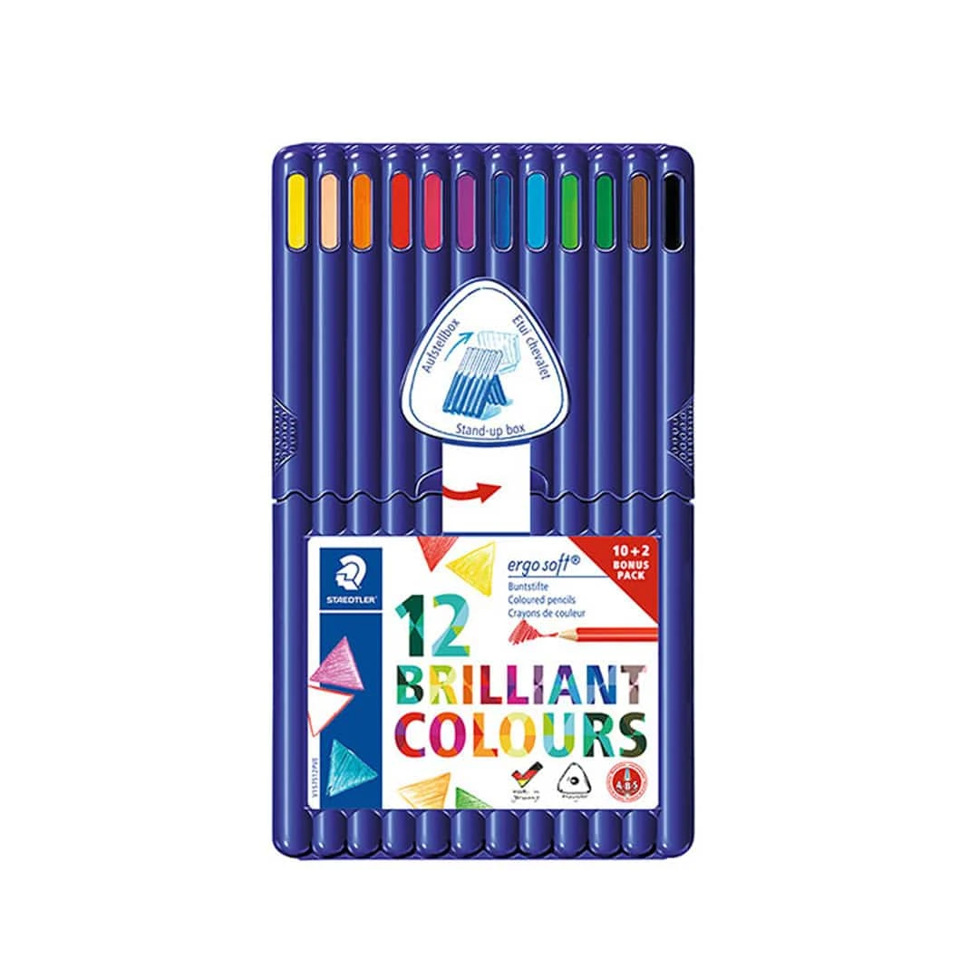 Staedtler Kombi-Set 12 Farbstifte Ergo Soft Brilliant Colours im Aufstell-Etui & 12 Fasermaler Noris 325