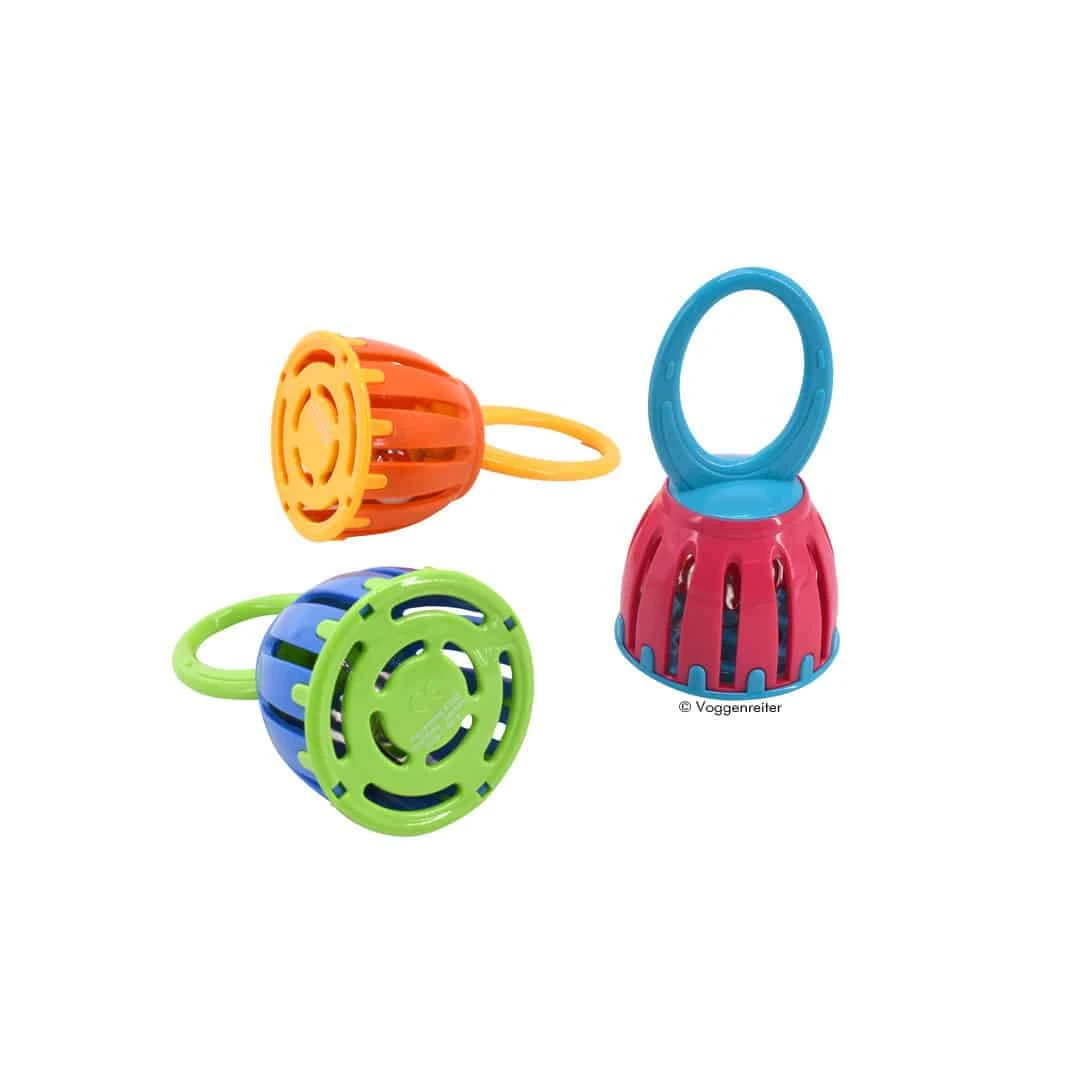 Kinder rasseln gern und lieben akustische und visuelle Stimulation – schon im frühen Babyalter. Voggenreiter entwirft Musikinstrumente für Babys und Kleinkinder und hat eine Serie von Rasseln und Glöckchen mit ansprechenden bunten Farben und Formen gestaltet.