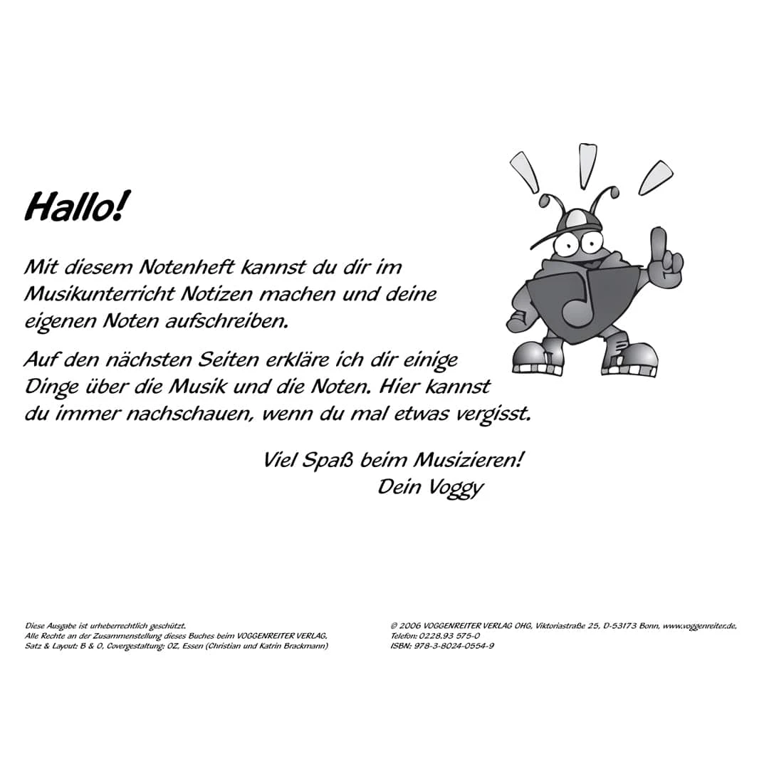 Voggy’s Notenheft ist nicht nur schön farbenfroh, sondern hat auch extra-große Notenlinien, was das Noten schreiben besonders für Kinderhandschriften leicht macht.