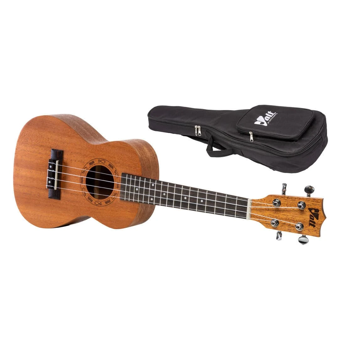 Die Ukulele VOLT Ukulele “Valencia” Soprano hat eine gute Saitenlage, stimmstabile Mechaniken, einen kräftigen, sonoren Klang und sieht mit ihrer “Fish & Wave”-Schalloch-Gravur einfach toll aus! Dazu bringt sie auch schon ihr eigenes gepolstertes Gigbag mit Zubehörfach mit, so dass der Unterricht sofort beginnen kann! Wer gern mit seinem Instrument auf einer Bühne steht, findet an dieser Ukulele auch bereits Gurtknöpfe vor, um sich die Ukulele mit einem Gurt umzuhängen.